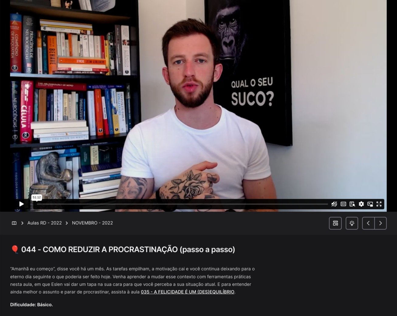 Separe um tempo da agenda para entender como a procrastinação acontece no cérebro. Nós temos uma aula, no Reservatório de Dopamina, em que explicamos como a motivação importa para manter constância nas atividades e não procrastinar mais.