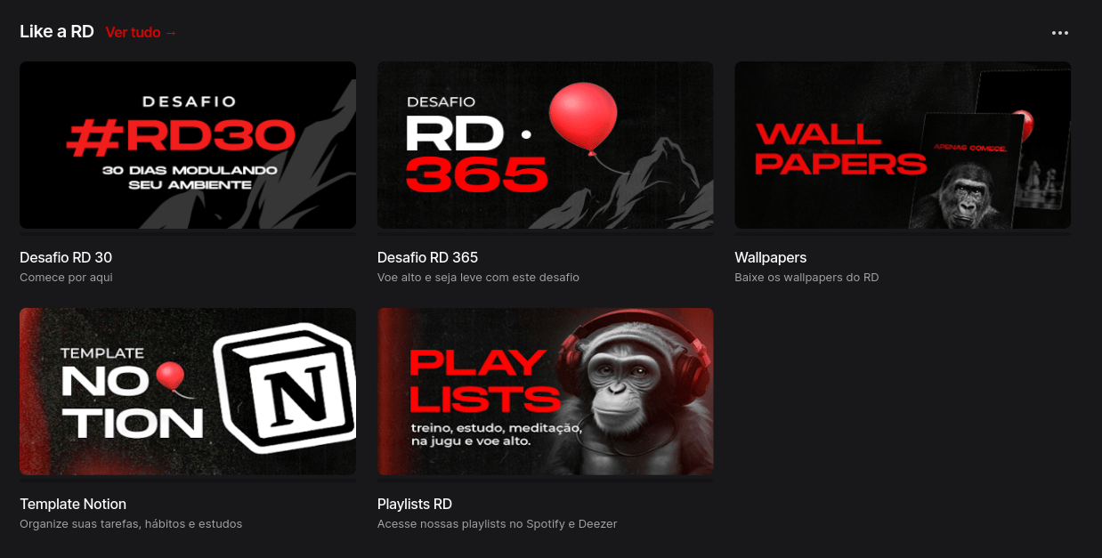 Há uma parte dedicada para você viver esteticamente e musicalmente como um RD, com wallpaper, playlists, Notion (planner).