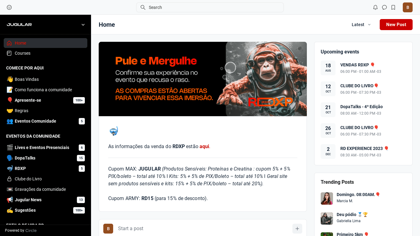 Além das aulas e dos módulos, temos uma comunidade para que os RDs interajam e troquem conhecimentos e experiências. Lá na Jugular, nosso ambiente de interação virtual, há eventos, lives, clube do livro e muito mais.