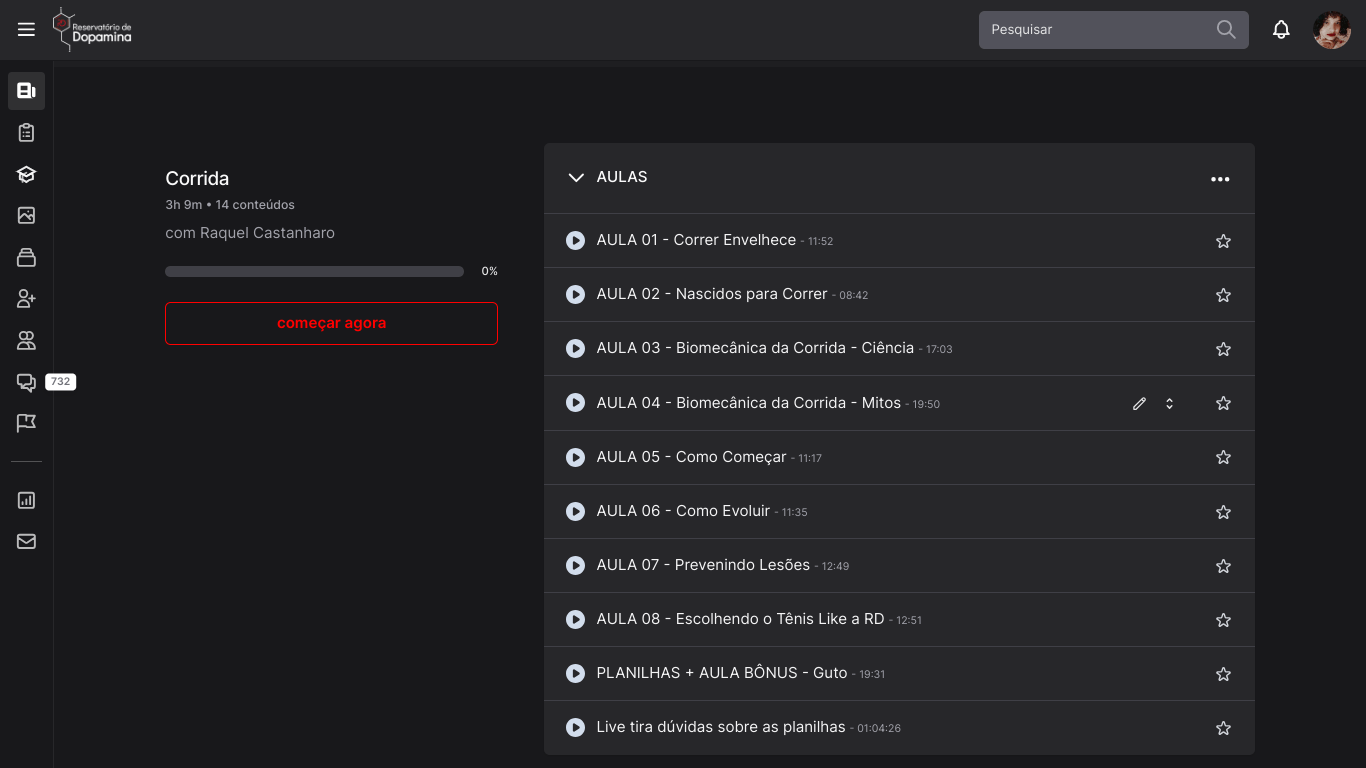 Foi pensando nisso que nós do RD preparamos um módulo de Corrida para impulsionar nossos alunos. São oito aulas com Raquel Castanharo; uma aula para utilizar as planilhas de corrida e uma live tira dúvida, ambos os vídeos com o treinador Guto.
